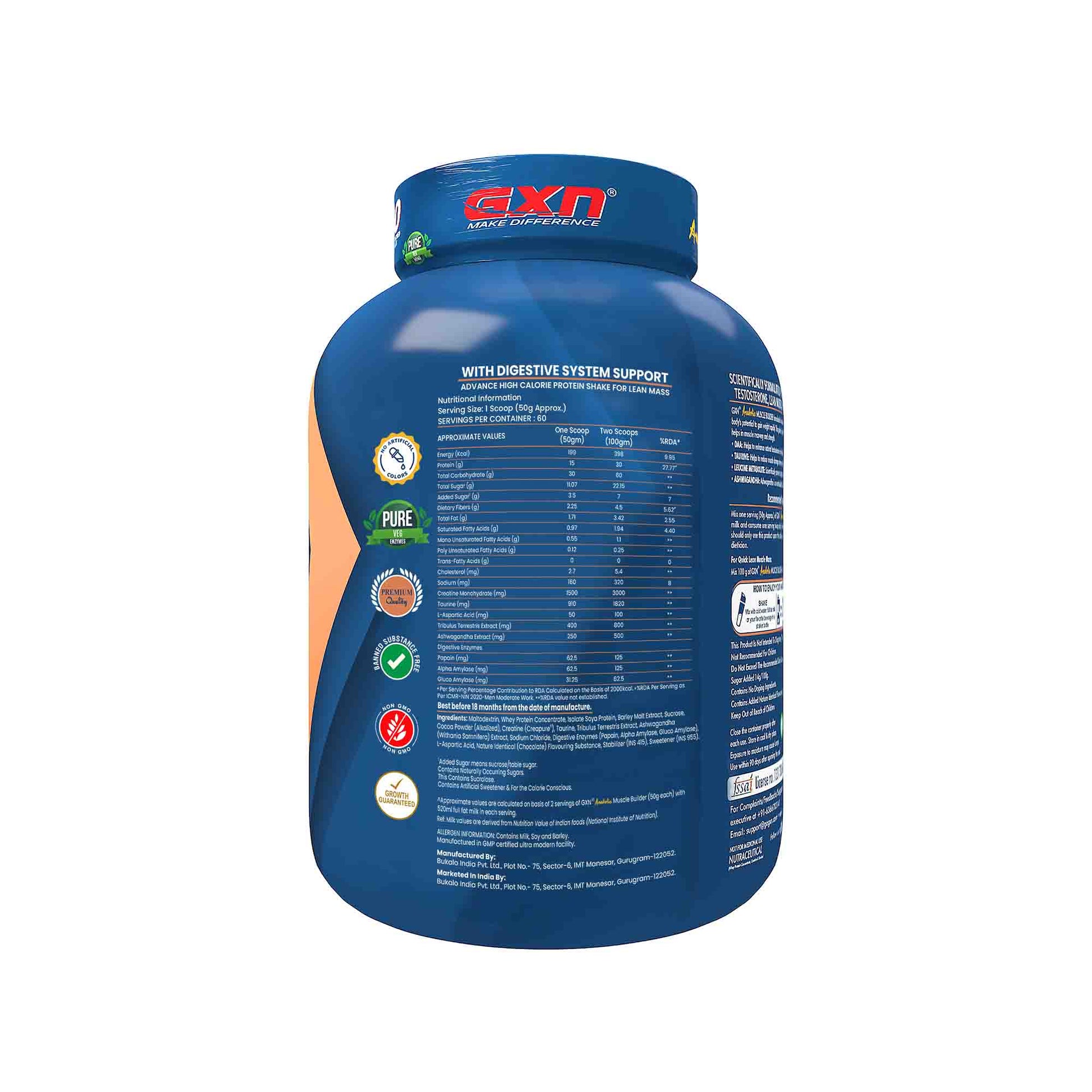 GXN Anabolic Muscle Builder is formulated with high grade imported natural and nature identical flavours (Chocolate Cake, American Ice Cream) for first in class taste.